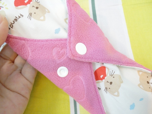 布護墊使用小心得:布護墊太薄太軟了,常常穿脫小內內時會往後跑,畢竟沒有背膠,建議扣比較緊一點的那一顆扣子