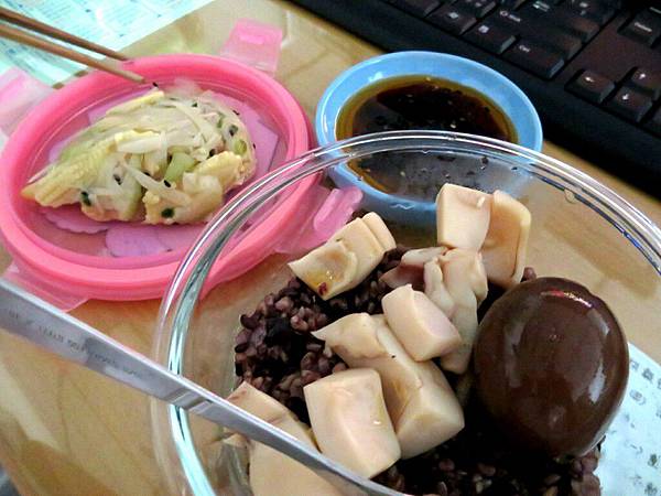 午餐是滷花枝配紅豆花豆糙米飯